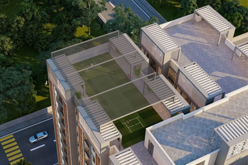 Residents will enjoy 50,000 sq. ft. clubhouse with 50+ lifestyle amenities, including swimming pool, gymnasium, yoga and meditation area, banquet hall, indoor games, kids’ play zone, landscaped gardens, jogging tracks, and 24/7 security with gated access.