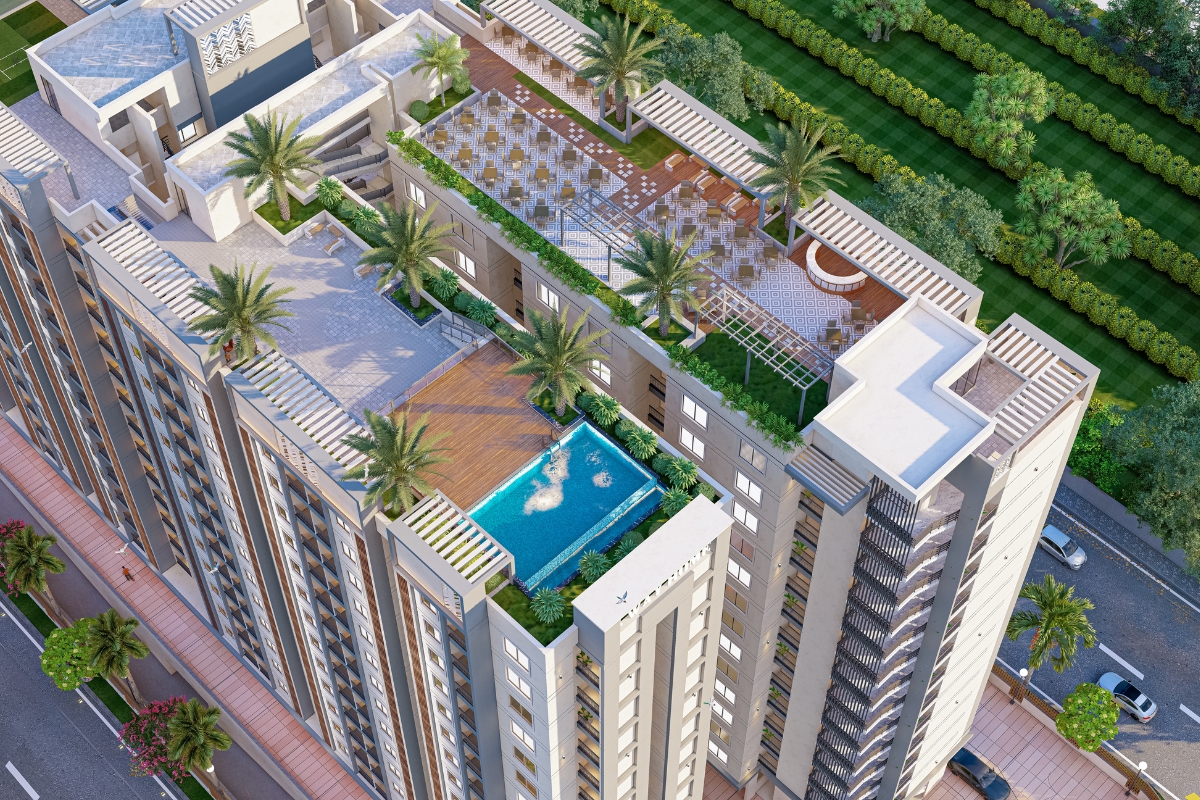 Residents will enjoy 50,000 sq. ft. clubhouse with 50+ lifestyle amenities, including swimming pool, gymnasium, yoga and meditation area, banquet hall, indoor games, kids’ play zone, landscaped gardens, jogging tracks, and 24/7 security with gated access.